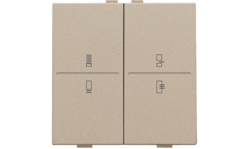 Tweevoudige toets voor een busdrukknop met 4 bedieningsknoppen en 4 feedbackleds. De toets is voorzien van een regime-opdruk. Afwerkingskleur: champagne coated.