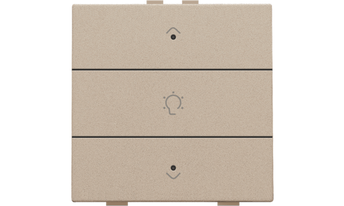 Met deze drukknop dim je één lichtpunt of lichtkring. Hij wordt via een klikmechanisme op de muurprint bevestigd. Een led geeft aan of het licht op- of neergedimd is. Mechanisme inclusief toets. Afwerkingskleur: champagne coated.