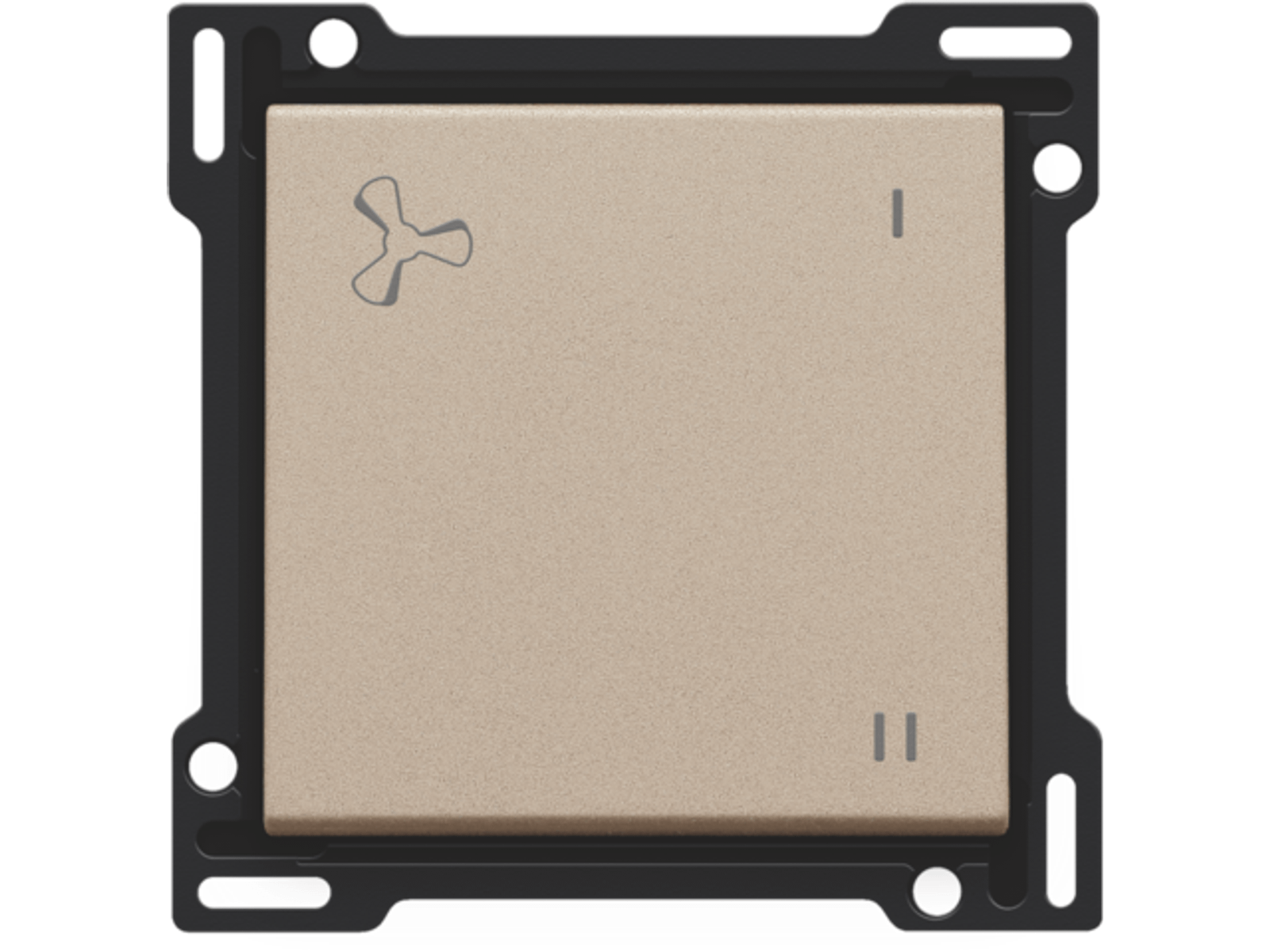 Centraalplaat met 1 toets met een ventilatie icoon aanduiding. Deze toets wordt gebruikt voor de bediening van mechanische gecontroleerde ventilatie.Afwerkingskleur: champagne coated.