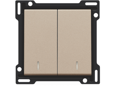 Afwerkingsset met dubbele lens voor serieschakelaar, wisselschakelaar + drukknop N.O., dubbele wisselschakelaar of dubbele drukknop N.O. of N.G., champagne coated