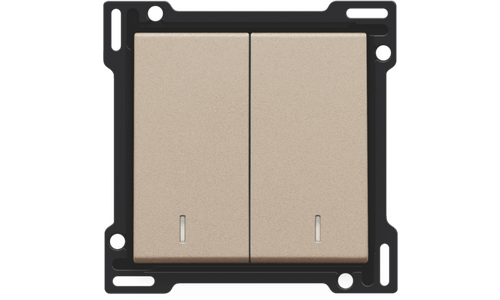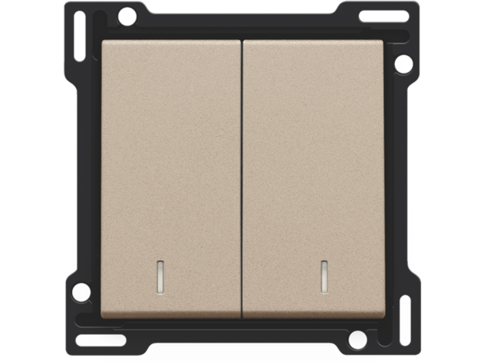 Centraalplaat met 2 toetsen met telkens een eigen lens. Hiermee kan je vlot verschillende lichtpunten bedienen in 1 of meerdere ruimtes. Achter de lens kan je een compacte ledmodule plaatsen zodat je vlot ziet wanneer een licht ingeschakeld is. Afwerkingskleur: champagne coated.
