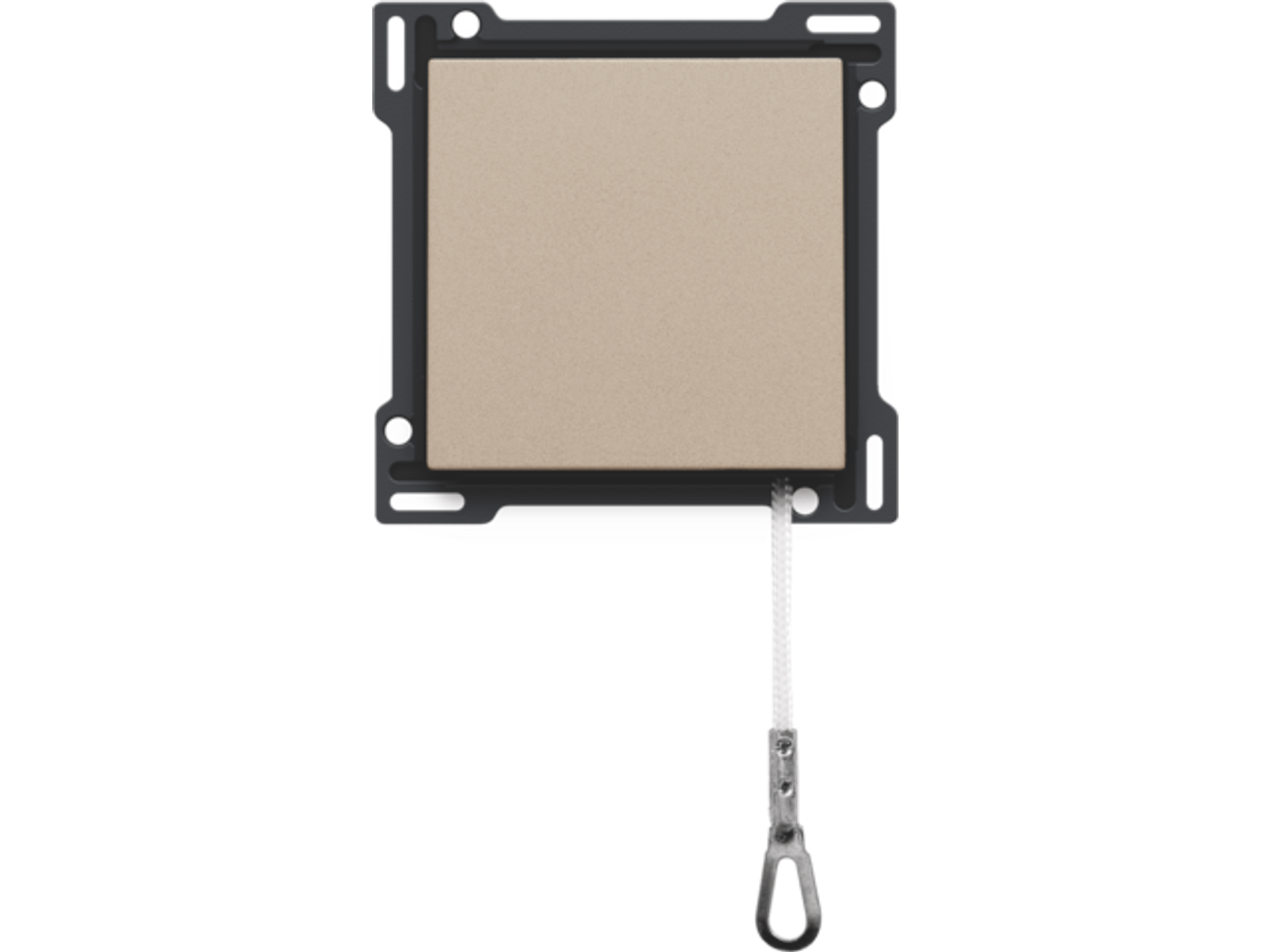 Centraalplaat met trekmechanisme. Door het treksysteem wordt het lichtpunt bediend. Deze toepassing wordt meestal gebruikt in slaapkamers. Afwerkingskleur: champagne coated.