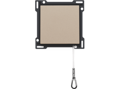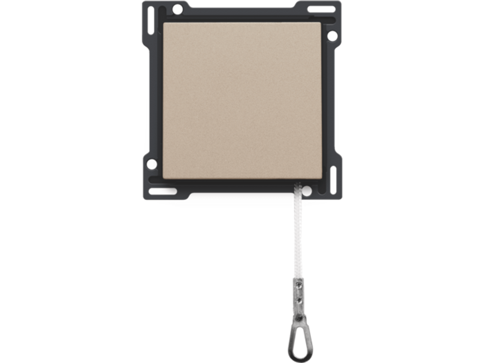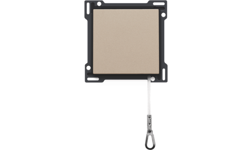 Centraalplaat met trekmechanisme voor drukknop. Door het treksysteem wordt het lichtpunt bediend. Deze toepassing wordt meestal gebruikt in slaapkamers. Afwerkingskleur: champagne coated.