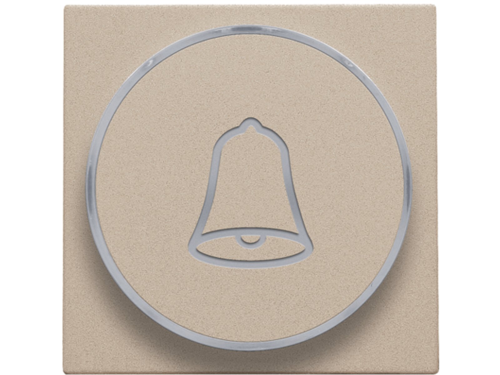Afwerkingsset met doorschijnende ring met belsymbool voor drukknop 6 A met amberkleurige led met E10-lampvoet, champagne coated