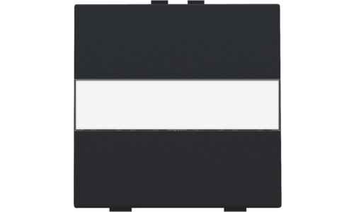 Een enkelvoudige toets met ruimte voor het aanbrengen van een eigen tekst voor een busdrukknop. Afwerkingskleur: black coated.