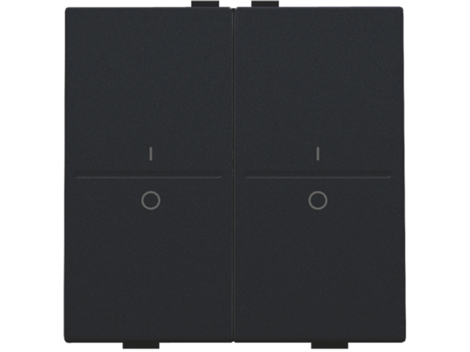 Tweevoudige toets met opdruk I en 0 voor draadloze schakelaar of drukknop met 4 bedieningsknoppen, black coated