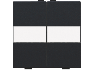Een tweevoudige toets met ruimte voor het aanbrengen van een eigen tekst voor een busdrukknop. Afwerkingskleur: black coated.