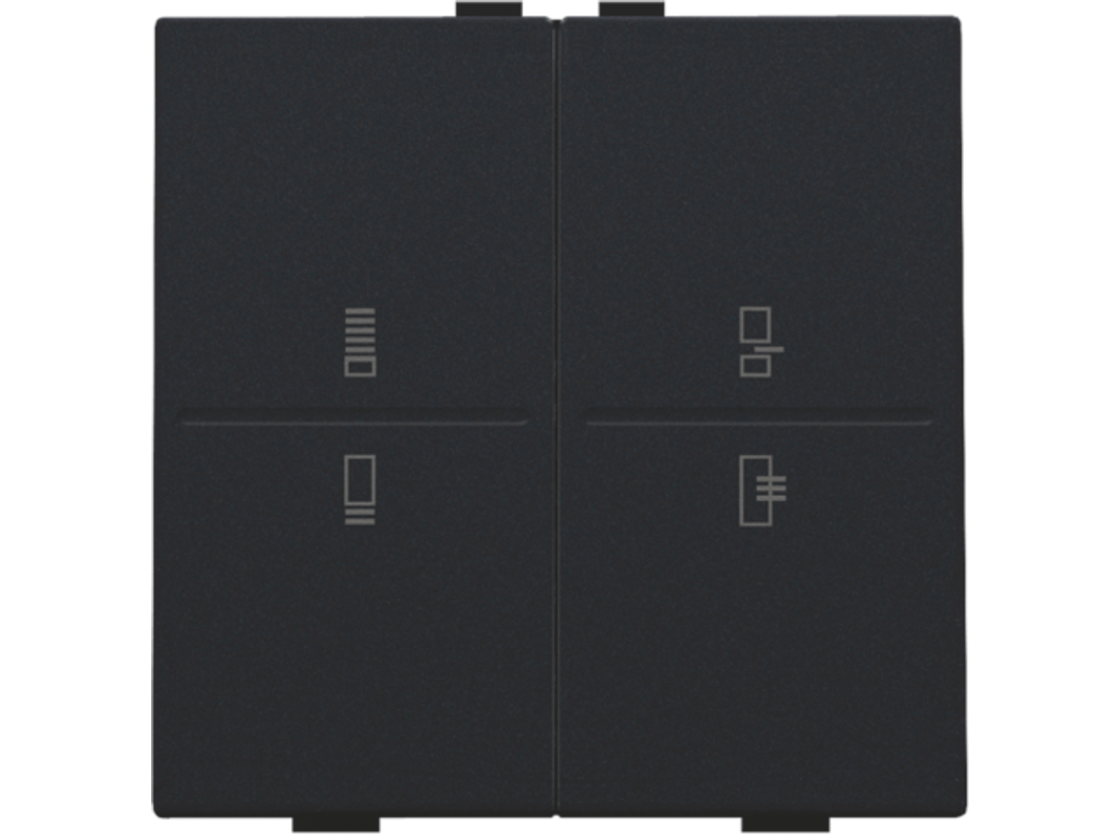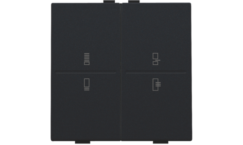 Tweevoudige toets voor een busdrukknop met 4 bedieningsknoppen en 4 feedbackleds. De toets is voorzien van een regime-opdruk. Afwerkingskleur: black coated.