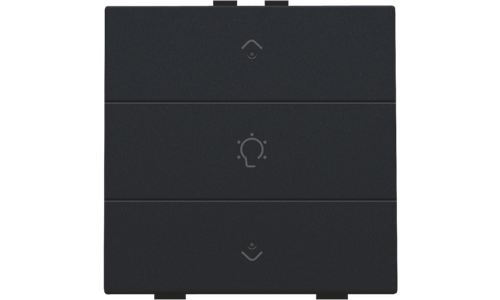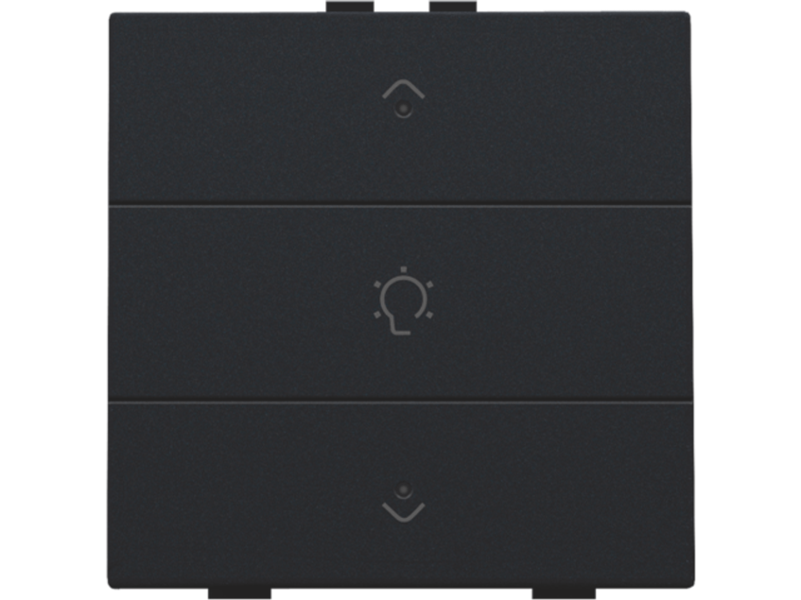 Met deze drukknop dim je één lichtpunt of lichtkring. Hij wordt via een klikmechanisme op de muurprint bevestigd. Een led geeft aan of het licht op- of neergedimd is. Mechanisme inclusief toets. Afwerkingskleur: black coated.