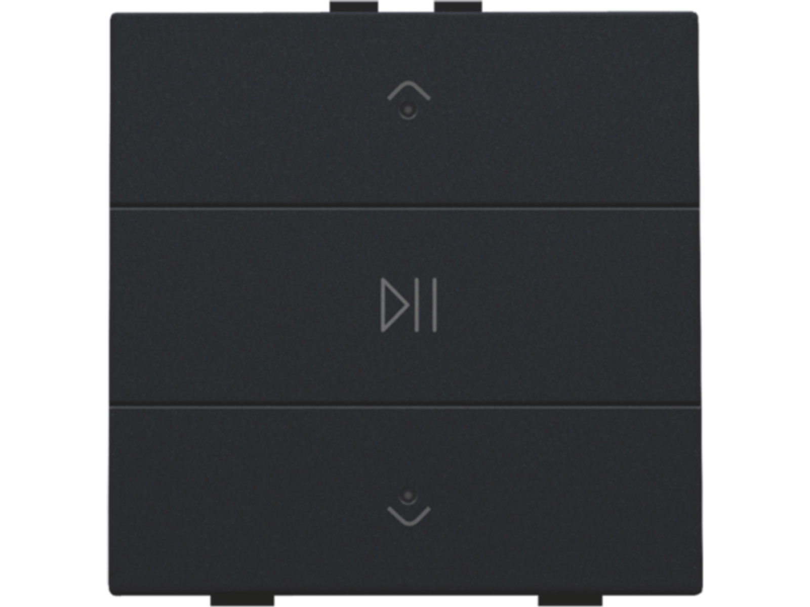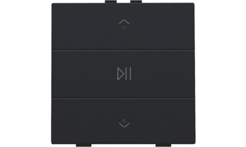 Met deze audioknop stuur je één audiotoestel of een groep van audiotoestellen aan. Een led geeft aan in welke positie het audiotoestel zicht bevindt. Hij wordt via een klikmechanisme op de muurprint bevestigd. Mechanisme inclusief toets. Afwerkingskleur: black coated.