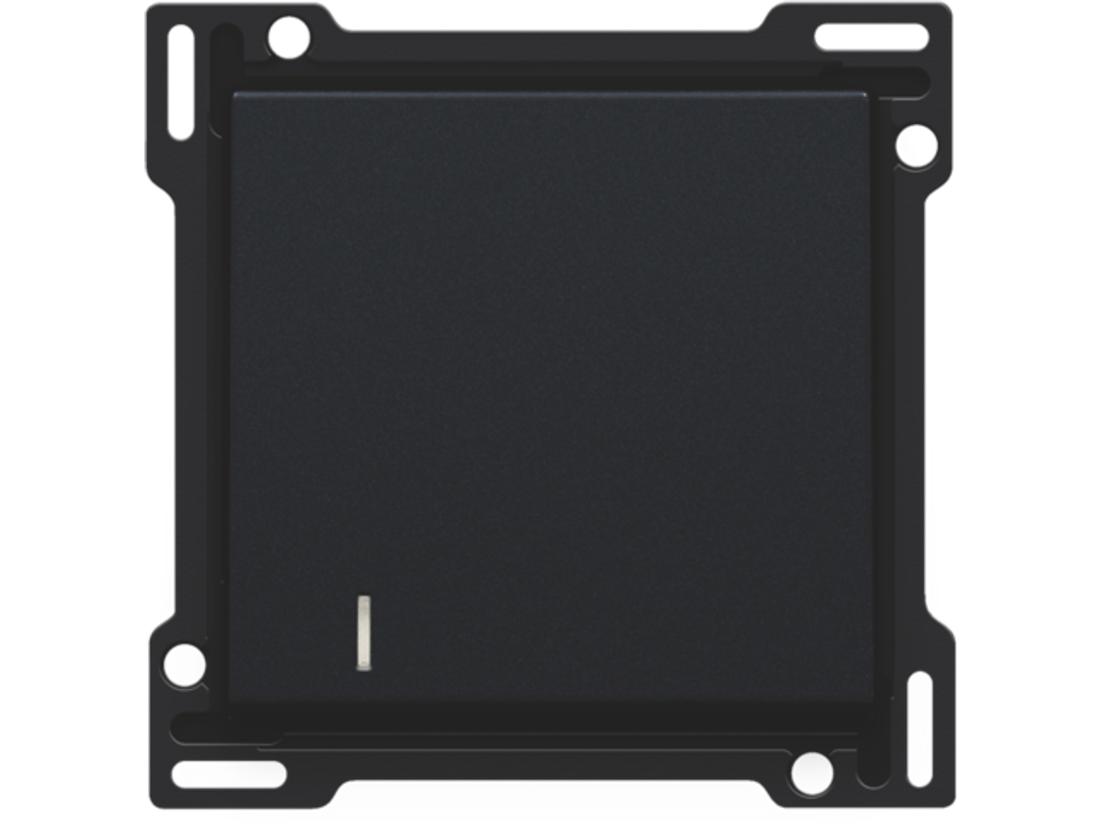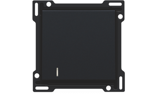 Centraalplaat uitgevoerd met een enkelvoudige drukknop met lens. Met deze drukknop kan je 1 verlichting bedienen. De lens biedt je de mogelijkheid om een ledmodule achter te plaatsen zodat je kan zien of het licht al dan niet ingeschakeld is Afwerkingskleur: black coated.