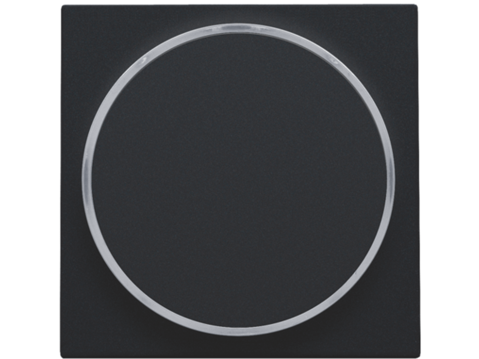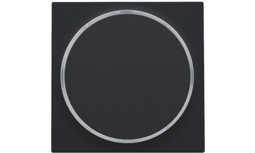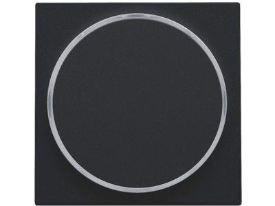 Centraalplaat met doorschijnende ring voor drukknop. De zijring laat toe dat de amberkleurige led aangeeft wanneer jet licht geactivieerd is. Het kan ook als een soort signaallamp gebruikt worden. Afwerkingskleur: black coated.