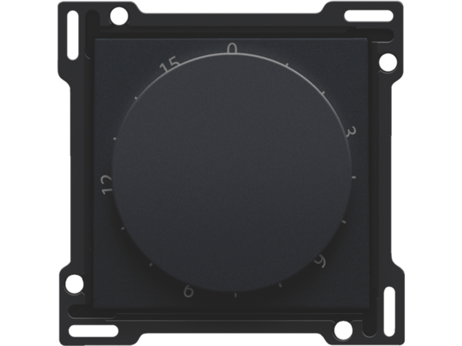 Centraalplaat voor tijdschakelaar. Deze tijdschakelaar laat toe om een tijdsduur in te stellen van 15 minuten waarin je licht bijvoorbeeld gaat branden. Afwerkingskleur: black coated.