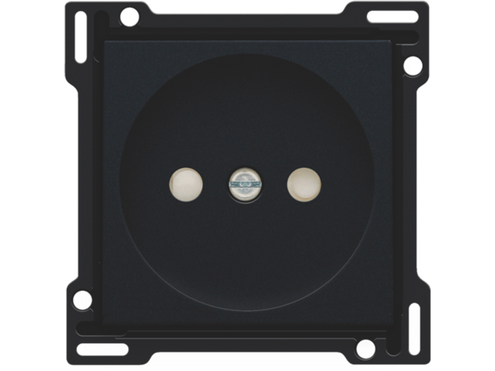 Centraalplaat voor inbouwstopcontact zonder aarding en beschermingsafsluiters. Afwerkingskleur: black coated.