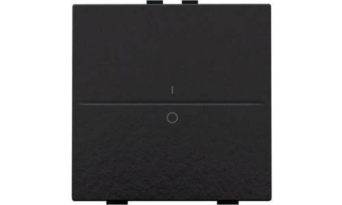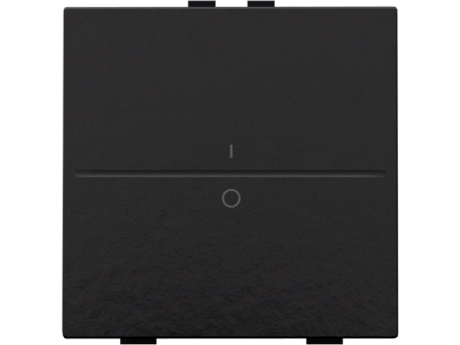 Enkelvoudige toets met symbool 'I' en '0' voor draadloze schakelaar of busdrukknop. Afwerkingskleur: Bakelite® piano black coated.