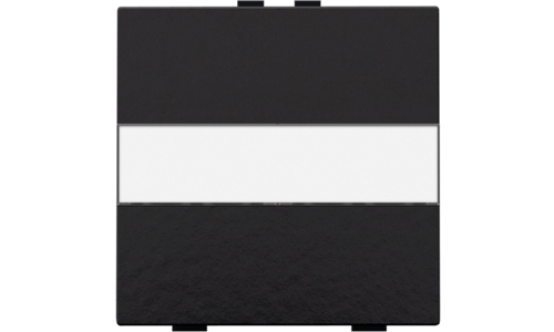 Een enkelvoudige toets met ruimte voor het aanbrengen van een eigen tekst voor een busdrukknop. Afwerkingskleur: Bakelite® piano black coated.