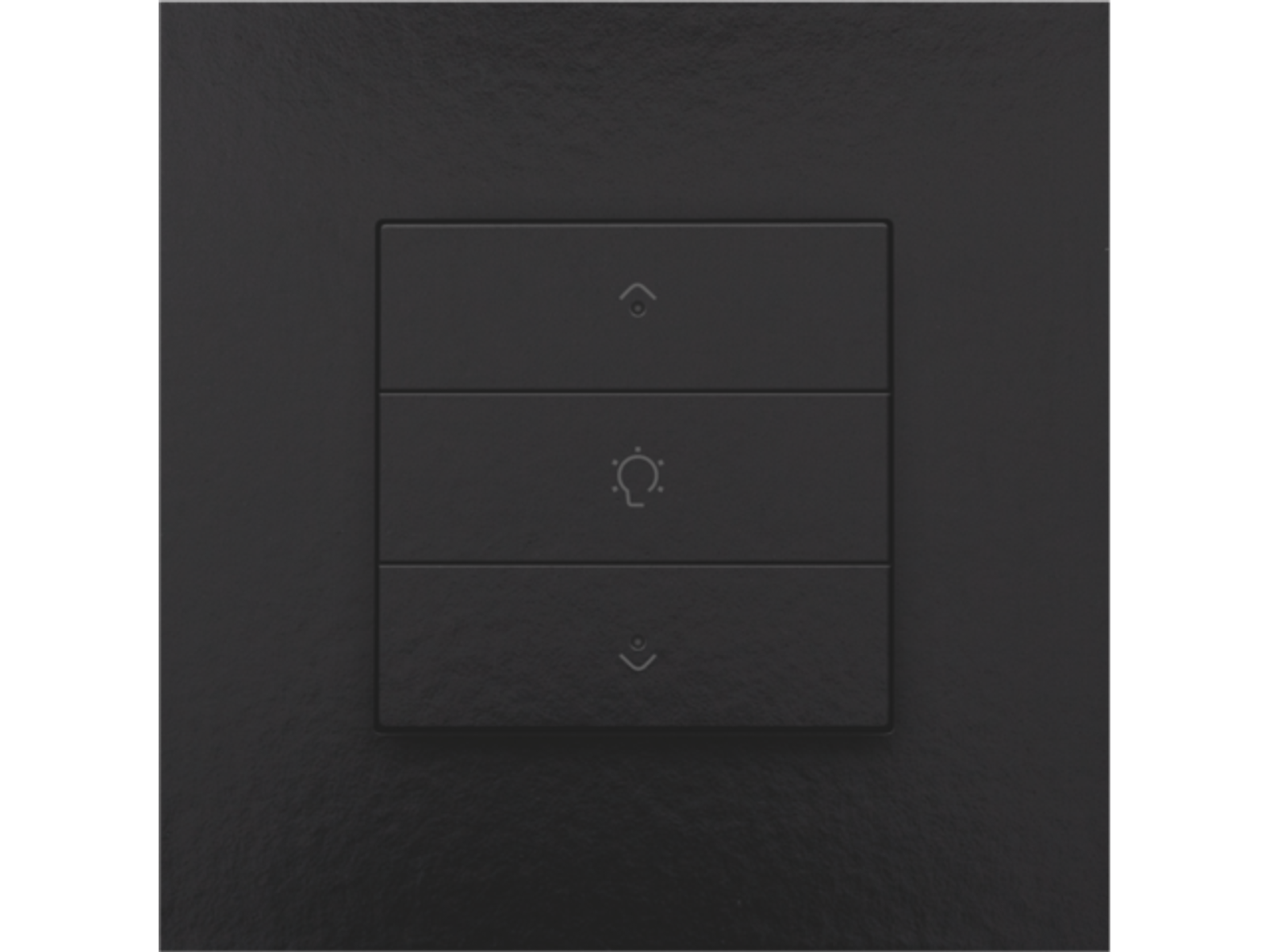 Met deze drukknop dim je één lichtpunt of lichtkring. Hij wordt via een klikmechanisme op de muurprint bevestigd. Een led geeft aan of het licht op- of neergedimd is. Mechanisme inclusief toets. Afwerkingskleur: Bakelite® piano black coated.