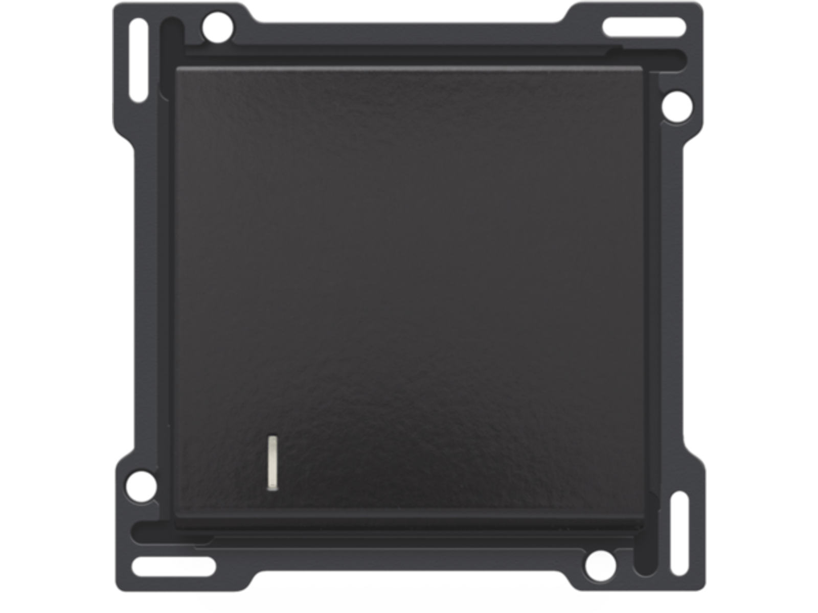 Centraalplaat uitgevoerd met een enkelvoudige drukknop met lens. Met deze drukknop kan je 1 verlichting bedienen. De lens biedt je de mogelijkheid om een ledmodule achter te plaatsen zodat je kan zien of het licht al dan niet ingeschakeld is Afwerkingskleur: Bakelite® piano black coated.
