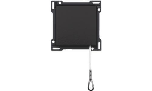 Centraalplaat met trekmechanisme voor drukknop. Door het treksysteem wordt het lichtpunt bediend. Deze toepassing wordt meestal gebruikt in slaapkamers. Afwerkingskleur: Bakelite® piano black coated.