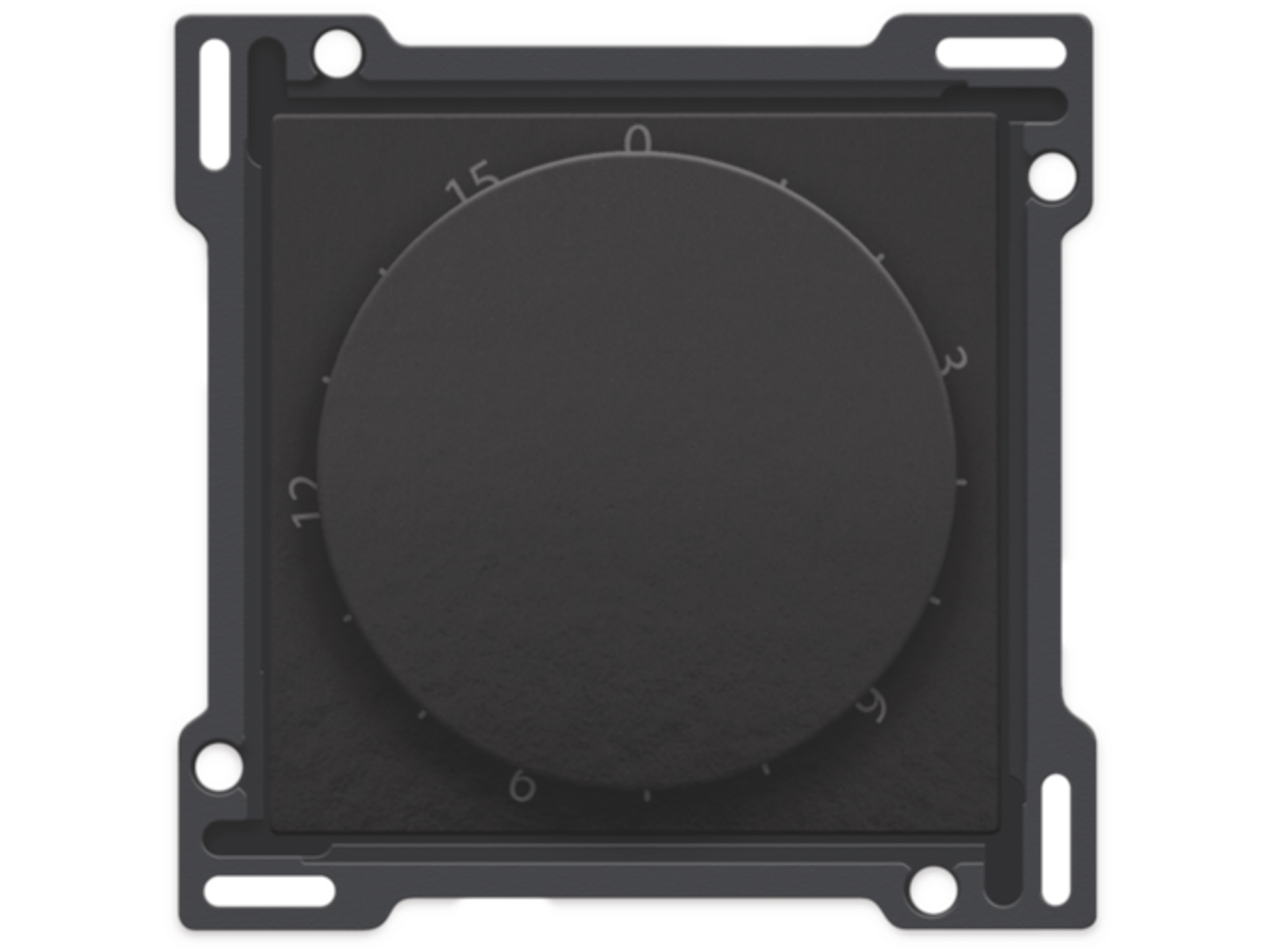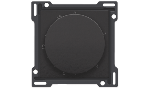 Centraalplaat voor tijdschakelaar. Deze tijdschakelaar laat toe om een tijdsduur in te stellen van 15 minuten waarin je licht bijvoorbeeld gaat branden. Afwerkingskleur: Bakelite® piano black coated.