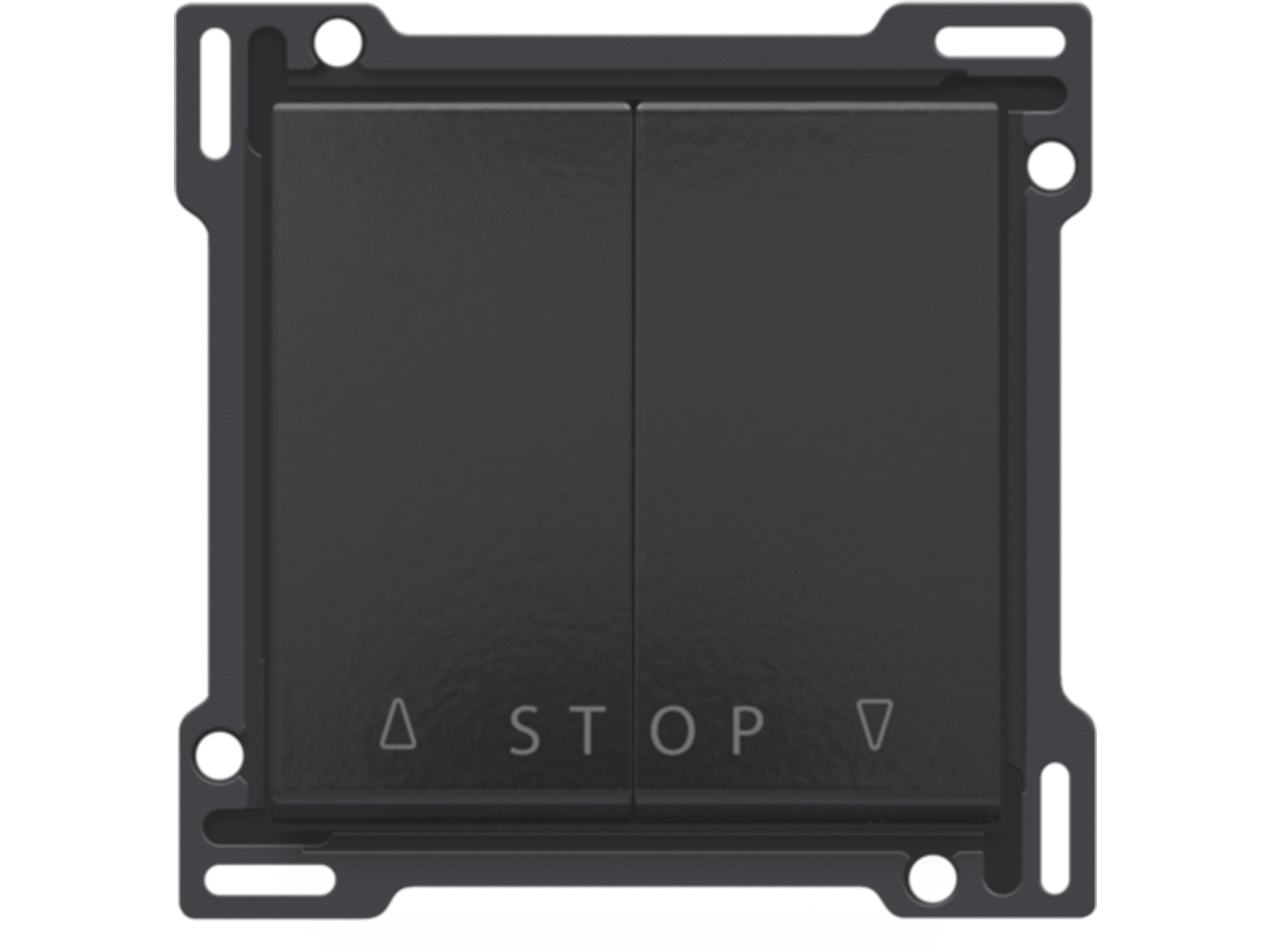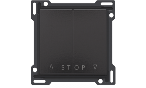 Centraalplaat met 2 toetsen voor electronische rolluiksturing via drukknop. De eerste toets heeft een 'omhoog' functie met stop. Met de tweede toets kan je de rolluiken of zonneweringen omlaag sturen met een stopfunctie. Afwerkingskleur: Bakelite® piano black coated.