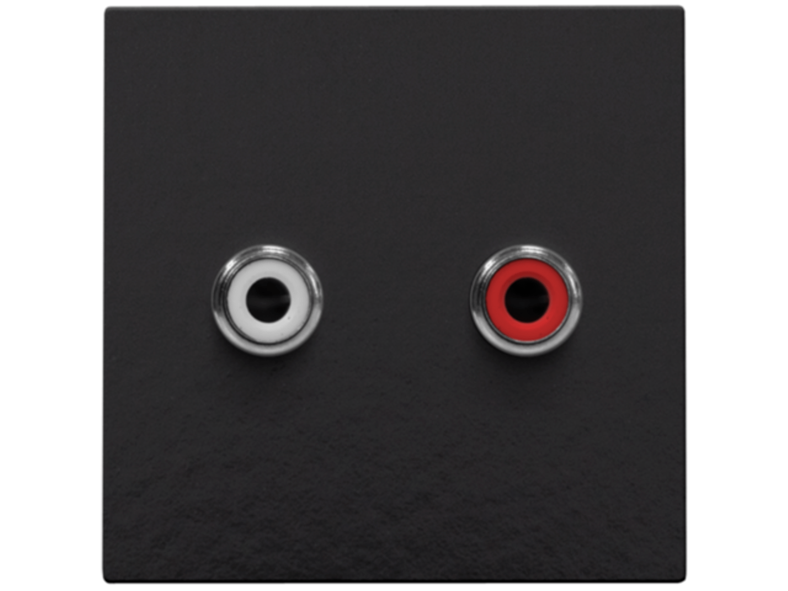 Afwerkingsset voor audio met twee cinch-aansluitingingen. Afwerkingskleur: Bakelite® piano black coated.