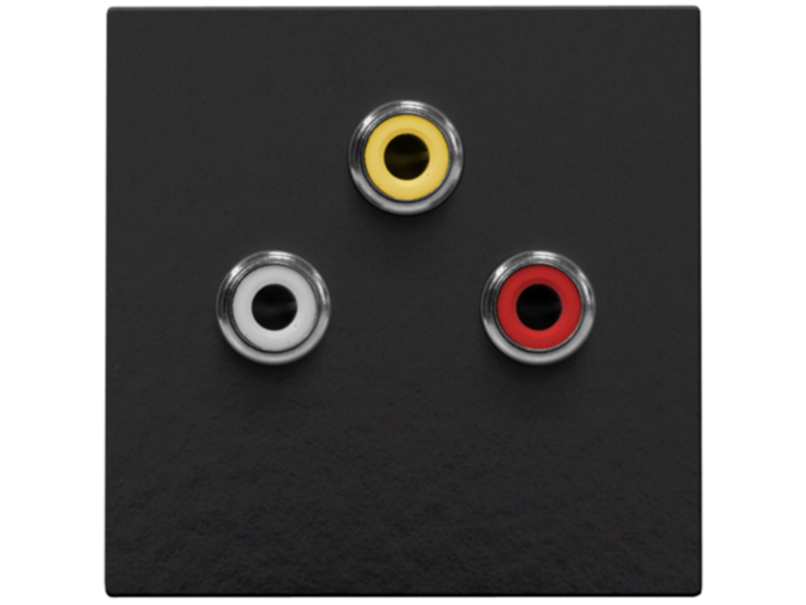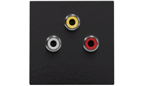 Afwerkingsset met drie cinch-aansluitingingen. Afwerkingskleur: Bakelite® piano black coated.