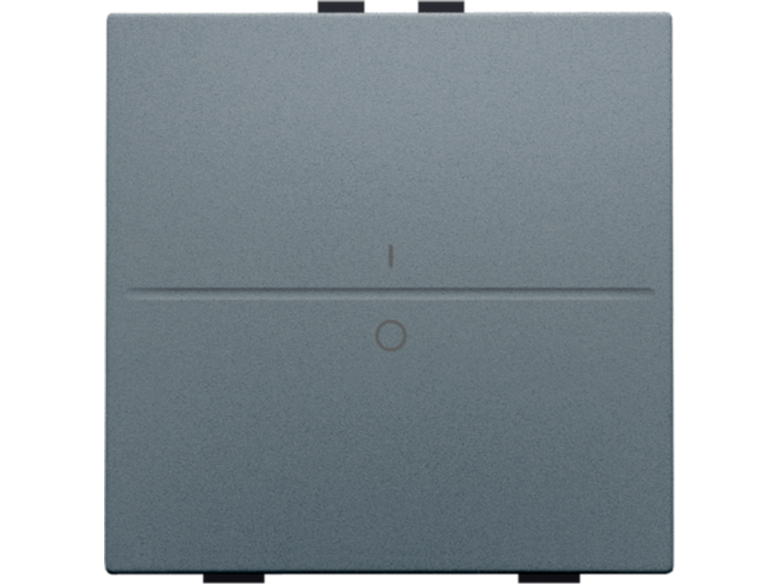 Enkelvoudige toets met symbool 'I' en '0' voor draadloze schakelaar of busdrukknop. Afwerkingskleur: alu steel grey coated.