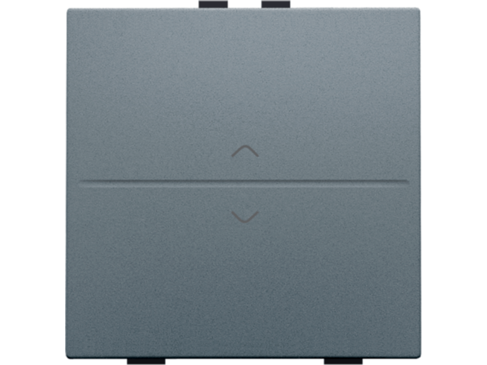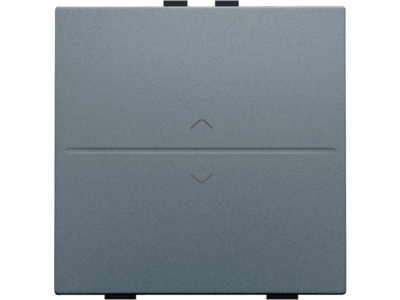 Een enkelvoudige toets met symbool 'op' en 'neer', voor een busdrukknop. Afwerkingskleur: alu steel grey coated.