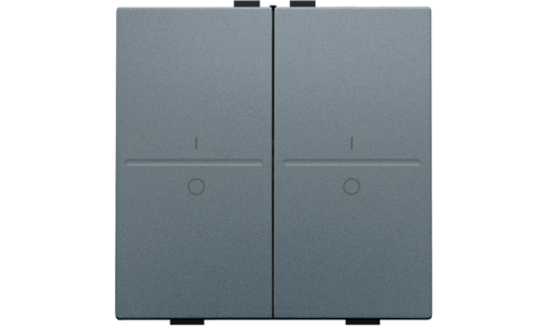 Een tweevoudige toets met symbool "I" en "0" voor een busdrukknop. Afwerkingskleur: alu steel grey coated.