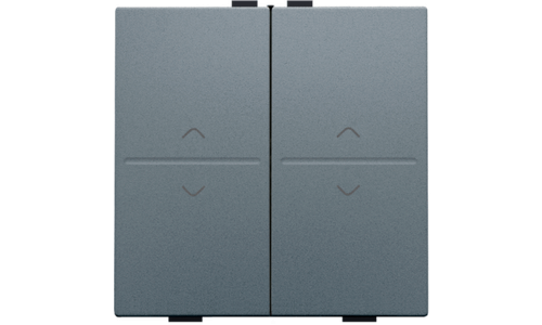 Een tweevoudige toets met symbool op en neer, voor een busdrukknop. Afwerkingskleur: alu steel grey coated.
