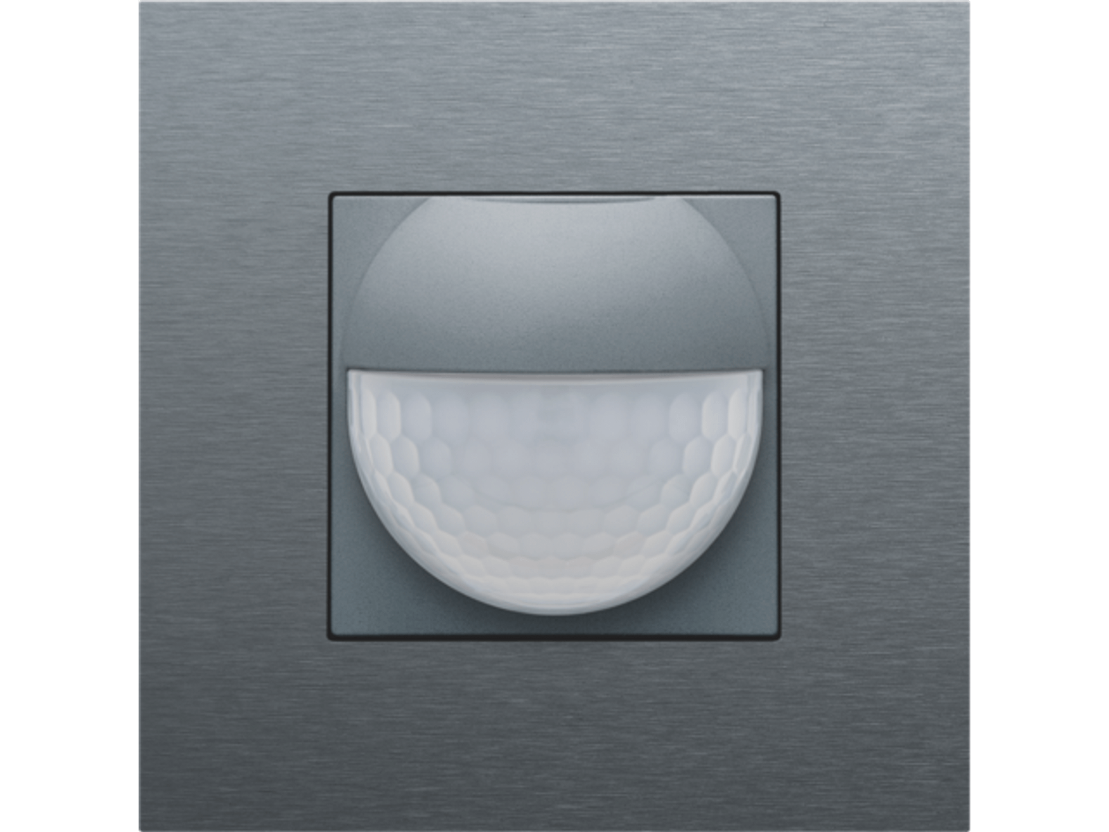 Afwerkingsset voor de binnenbewegingsmelder voor Niko Home Control. Met de toets schakel je het licht zelf aan en uit. Er brandt een led als je de bewegingsmelder manueel aanschakelt. Afwerkingskleur: alu steel grey coated.