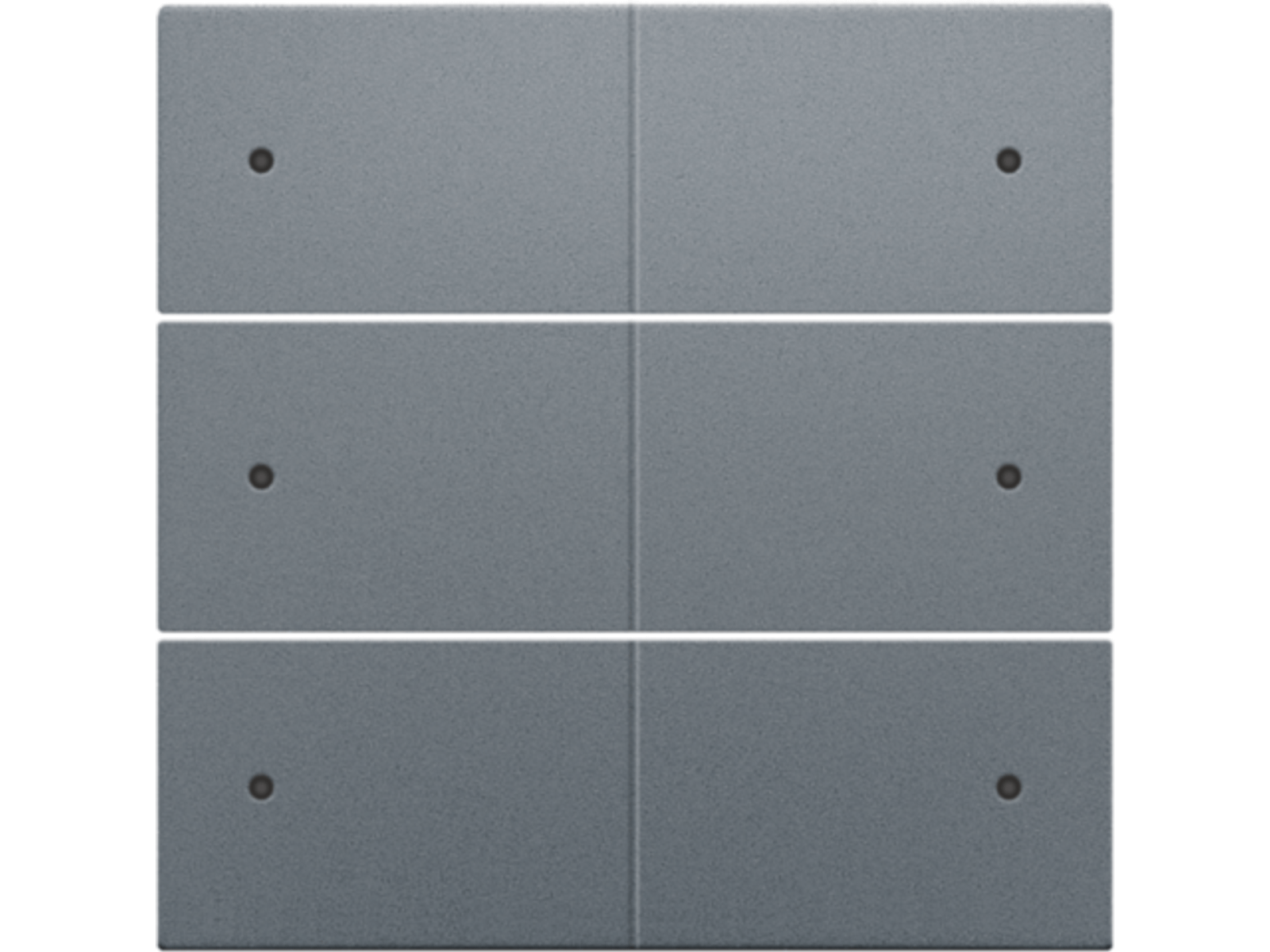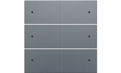 Centraalplaat met 6 potentiaal vrije drukknoppen van 24 V. Hiermee kan je vlot verschillende lichtpunten bedienen in 1 of meerdere ruimtes. De led aanduidingen op de toetsen geven snel weer welk licht er nog brandt. Afwerkingskleur: alu steel grey coated.
