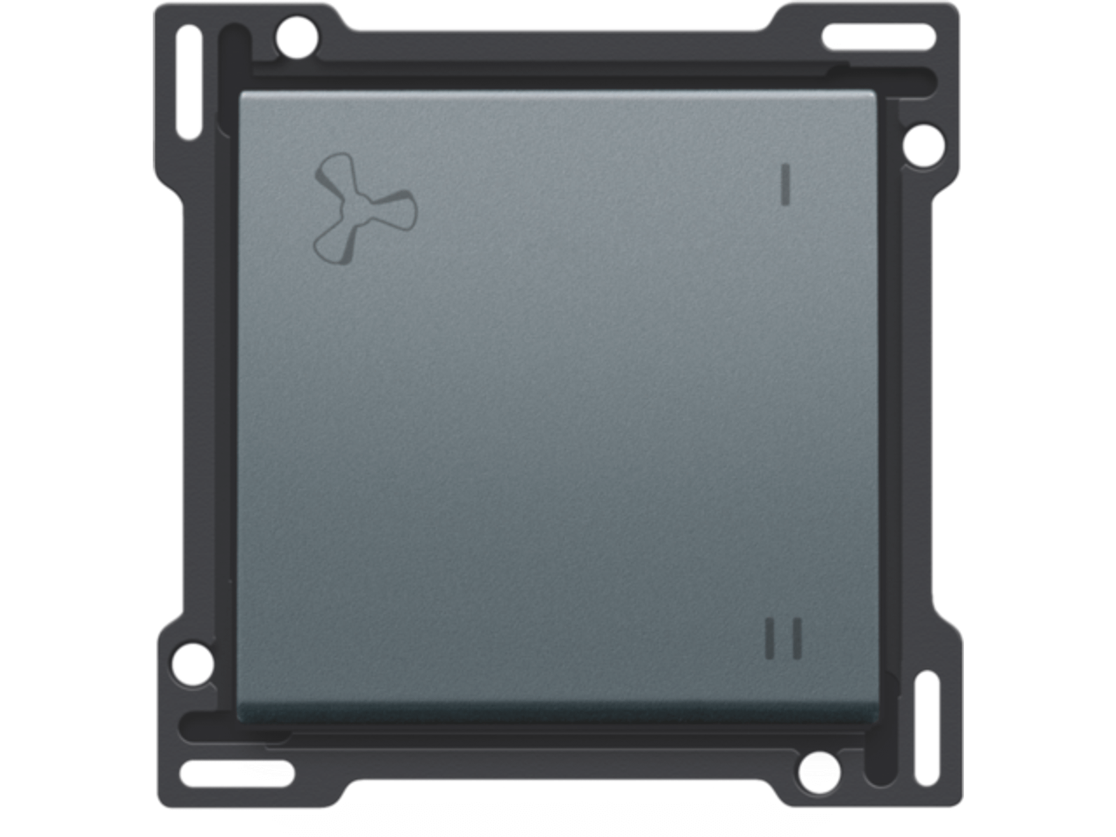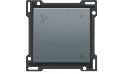 Centraalplaat met 1 toets met een ventilatie icoon aanduiding. Deze toets wordt gebruikt voor de bediening van mechanische gecontroleerde ventilatie.Afwerkingskleur: alu steel grey coated.