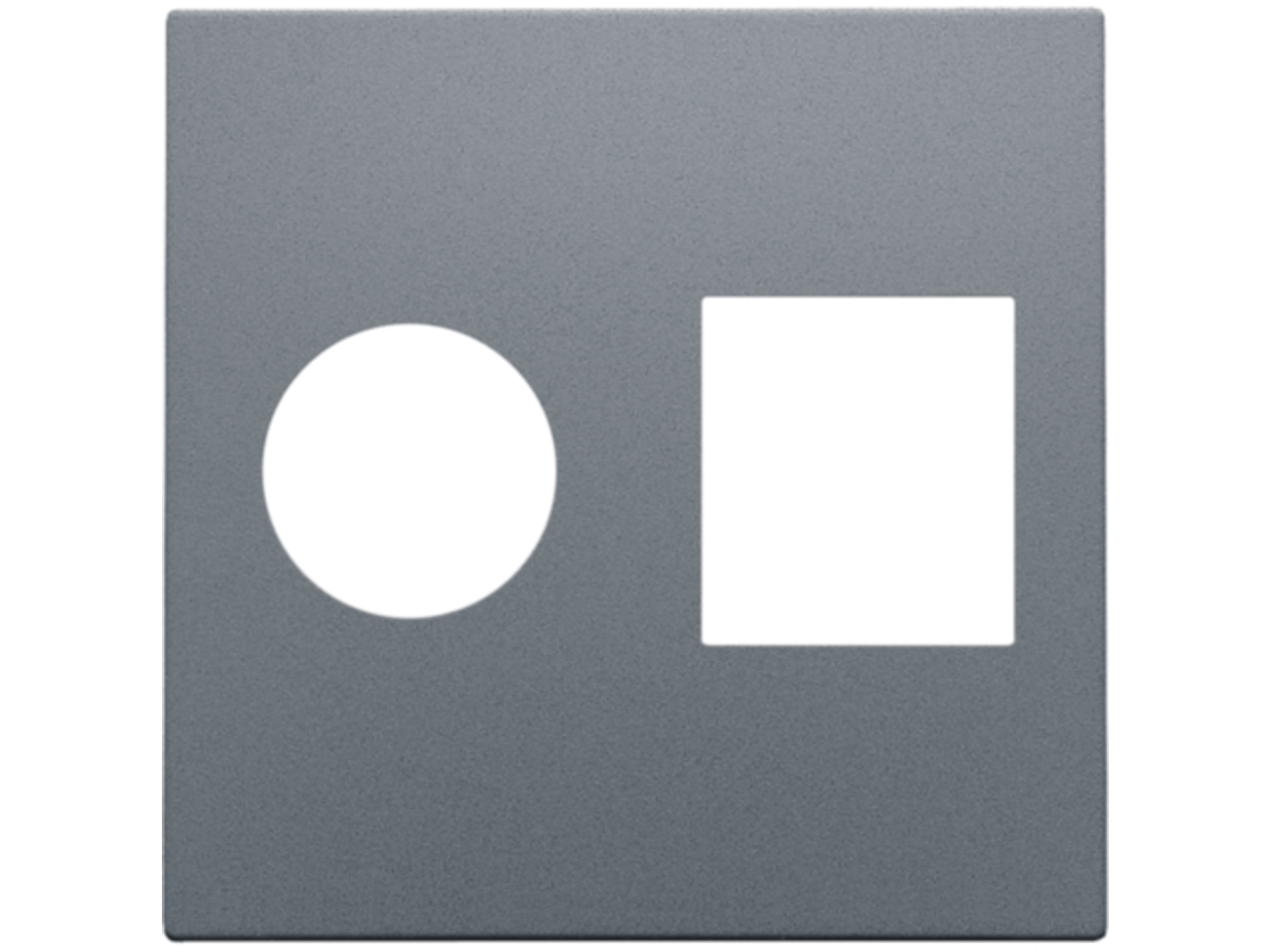 Centraalplaat voor enkelvoudige coaxaansluiting en netwerkaansluiting. De eerste ingang is bestemd voor een EDU TV-aansluiting. De tweede is bestemd voor een netwerkaansluiting. Afwerkingskleur: alu steel grey coated