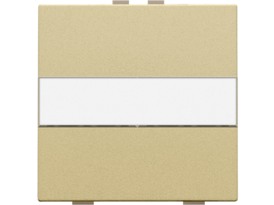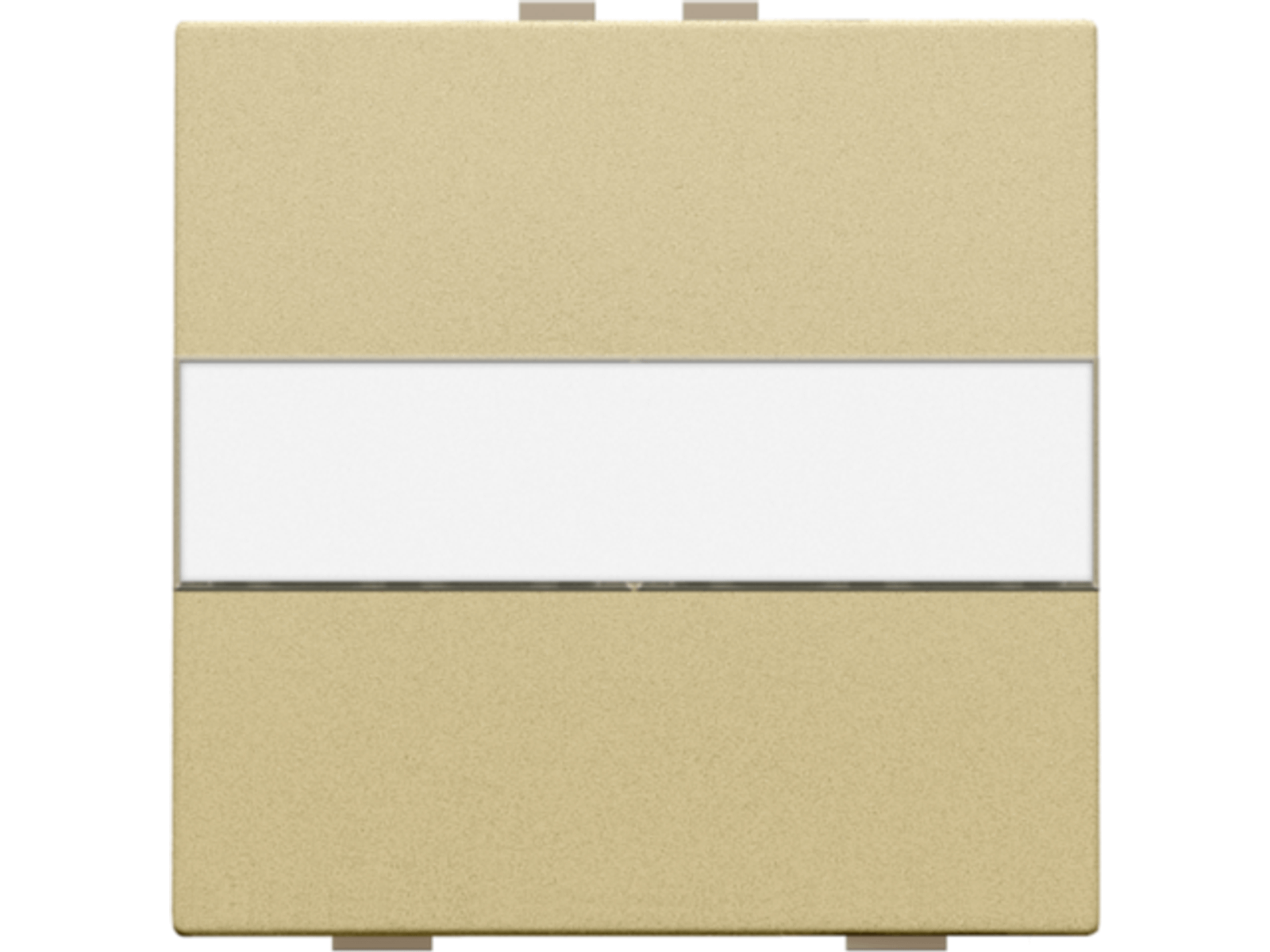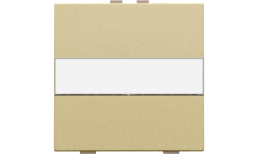 Een enkelvoudige toets met ruimte voor het aanbrengen van een eigen tekst voor een busdrukknop. Afwerkingskleur: alu gold coated.
