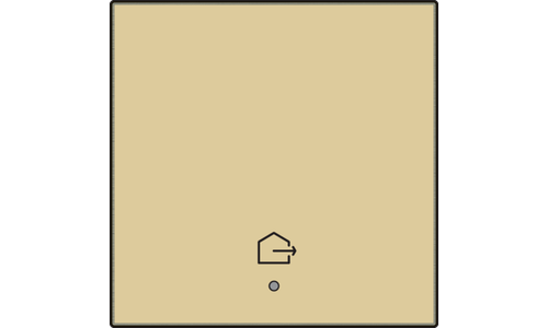 Afwerkingsset met lens voor geconnecteerde enkelvoudige schakelaar met symbool "woning verlaten", gold coated.