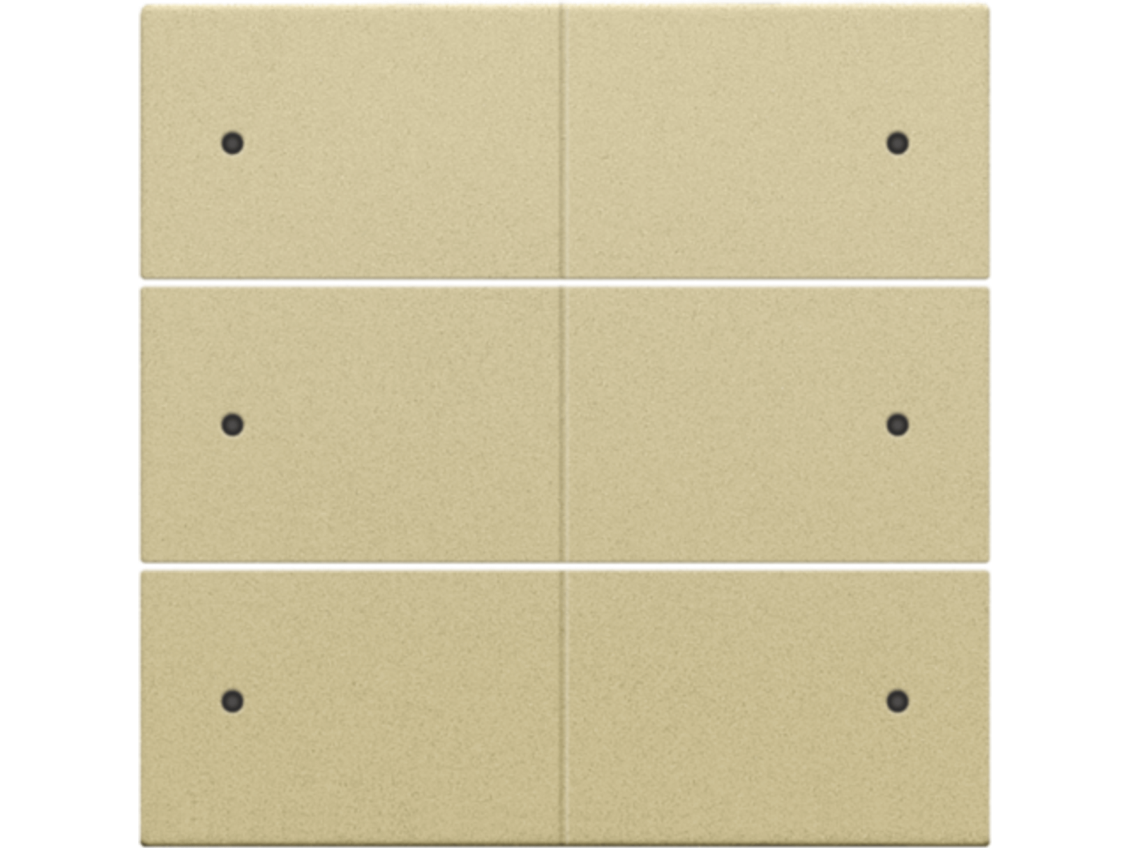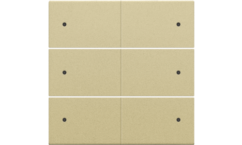 Centraalplaat met 6 potentiaal vrije drukknoppen van 24 V. Hiermee kan je vlot verschillende lichtpunten bedienen in 1 of meerdere ruimtes. De led aanduidingen op de toetsen geven snel weer welk licht er nog brandt. Afwerkingskleur: alu gold coated.