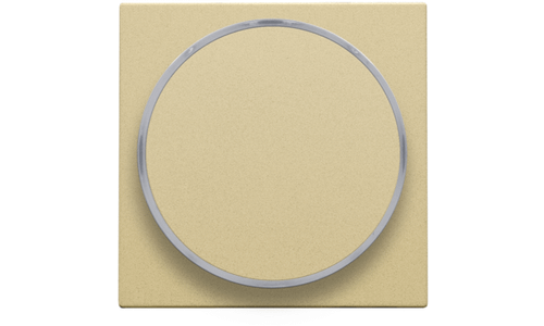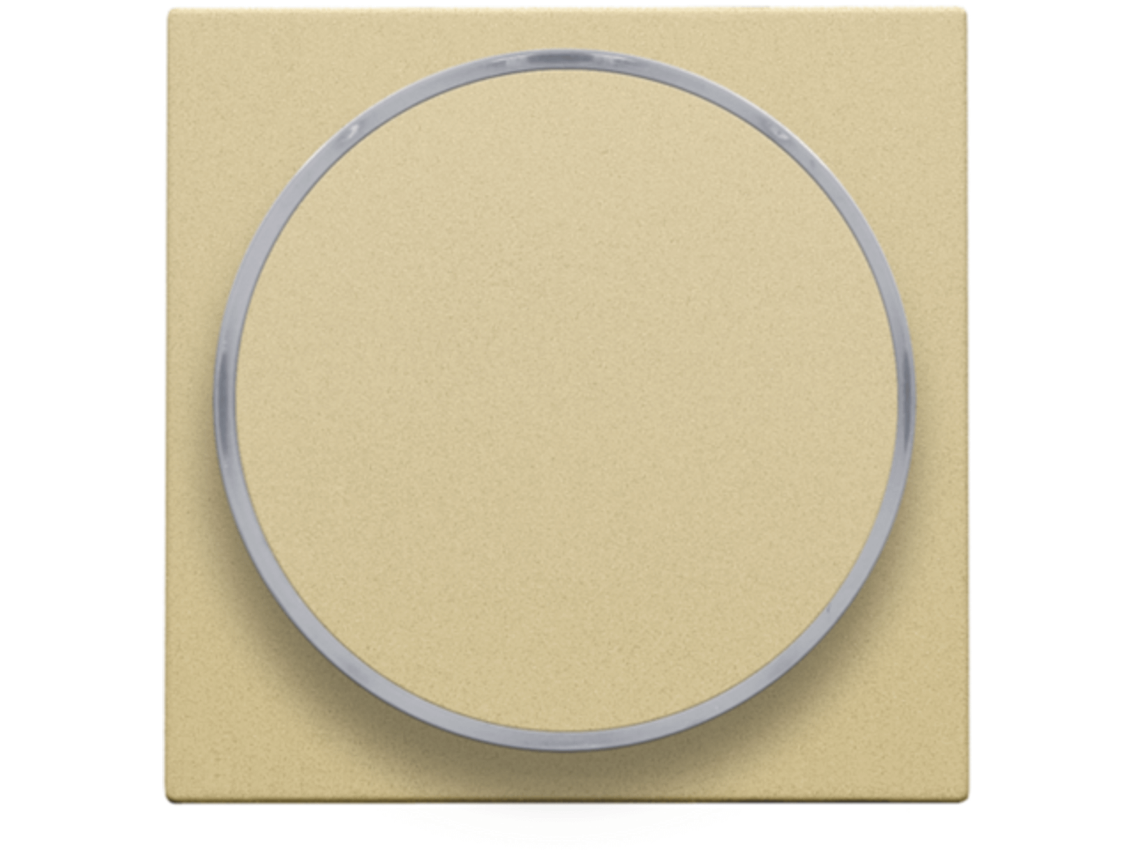 Centraalplaat met doorschijnende ring voor drukknop. De zijring laat toe dat de amberkleurige led aangeeft wanneer jet licht geactivieerd is. Het kan ook als een soort signaallamp gebruikt worden. Afwerkingskleur: alu gold coated.