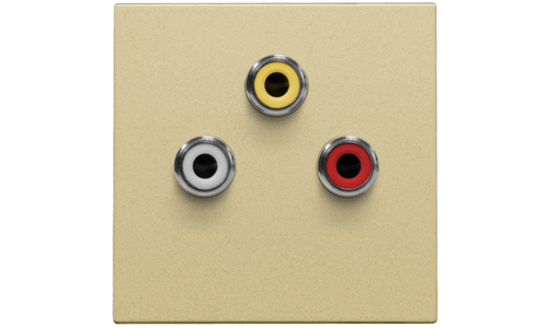 Afwerkingsset met drie cinch-aansluitingingen. Afwerkingskleur: alu gold coated.