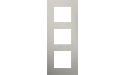 Drievoudige afdekplaat met 60 mm verticale centerafstand uit de reeks Niko Pure.Afwerkingskleur afdekplaat: Niko Pure stainless steel on white.