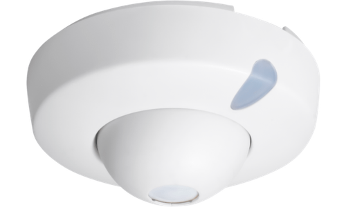 Deze bewegingsmelder met één kanaal is geschikt voor plafondmontage en wordt gebruikt om de binnenverlichting aan en uit te schakelen. De detector heeft een cirkelvormig detectiegebied met een diameter tot 20 m, dat aangepast kan worden met het afschermmasker. Het toestel heeft een ingebouwde lichtsensor en schakelt de verlichting automatisch aan en uit. Dit kan ook manueel via een NO-drukknop. Na de ingestelde vertragingstijd wordt het licht automatisch uitgeschakeld. Het toestel heeft een IP20-beschermingsgraad en voldoet aan de Europese norm EN 60669-2-1 voor EMC en veiligheid.