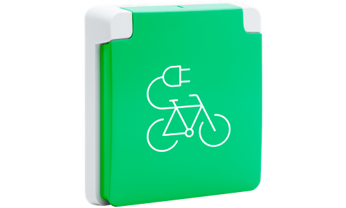 Spuitwaterdicht fietsoplaadpunt 16 A/250 Vac met penaarde, beschermingsafsluiters en met schroefklemmen, exclusief opbouwdoos, grey