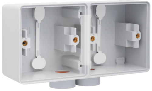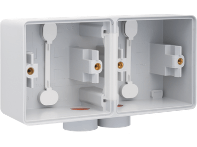 Deze dubbele horizontale opbouwdoos met één tweevoudige M20-ingang is geschikt voor het inbouwen van twee functies. Het geheel is spuitwaterdicht wat het uitermate geschikt maakt voor gebruik in vochtige ruimtes en veeleisende omgevingen. Afwerkingskleur: grey