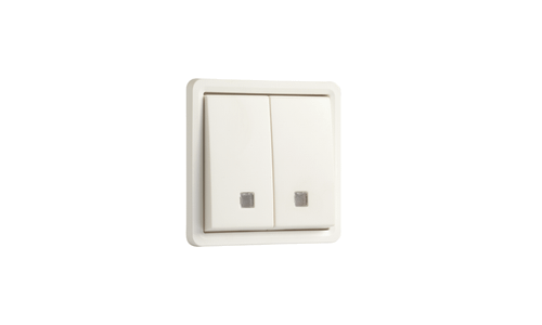 Deze verlichtbare dubbele opbouwdrukknop is voorzien van twee toetsen en twee maak (N.O.)- of verbreekcontacten (N.G.). Hij wordt in een spuitwaterdichte opbouwdoos geplaatst. Onderaan het mechanisme bevinden zich twee nissen voor integratie van twee verlichtingseenheden met draden. Het geheel is spuitwaterdicht wat het uitermate geschikt maakt voor gebruik in vochtige ruimtes en veeleisende omgevingen. De verlichtingseenheden moeten afzonderlijk besteld worden. Kleurcombinatie: white.