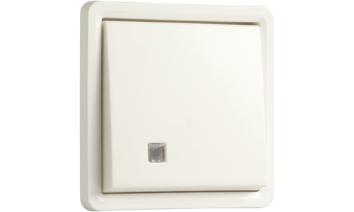 Spuitwaterdichte tweepolige controleschakelaar 10 AX/250 Vac met transparant venster en met insteekklemmen, exclusief opbouwdoos en verlichtingselementen, Kleurcombinatie: white.