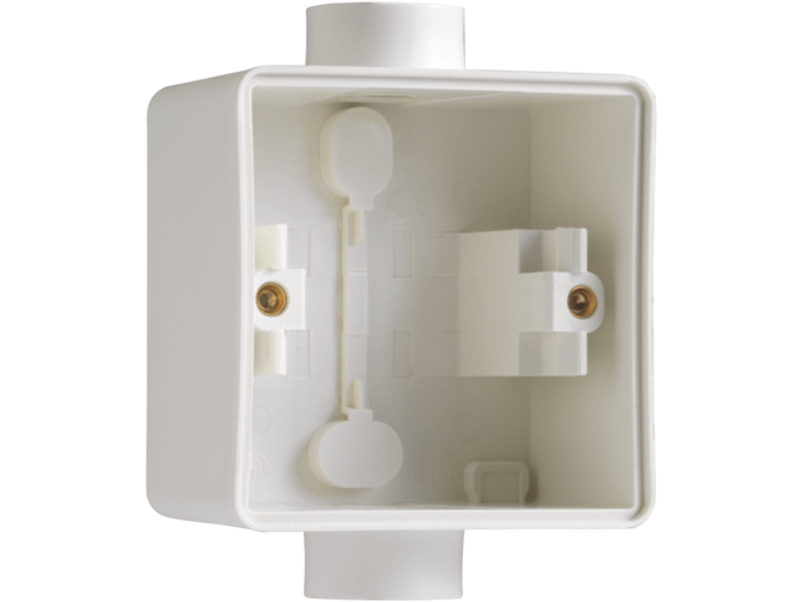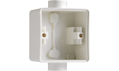 Deze opbouwdoos met twee enkelvoudige M20-ingangen is geschikt voor het inbouwen van één functie. Het geheel is spuitwaterdicht wat het uitermate geschikt maakt voor gebruik in vochtige ruimtes en veeleisende omgevingen. Afwerkingskleur: white