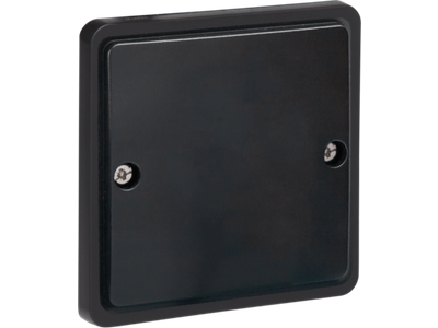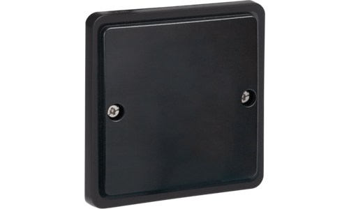 Deze blindplaat wordt rechtstreeks op een spuitwaterdichte opbouwdoos gemonteerd en is vervaardigd uit ABS. Ze wordt gebruikt om aansluitpunten voor latere uitbreidingen netjes af te sluiten of om niet standaard functies te kunnen monteren. Afwerkingskleur: black.