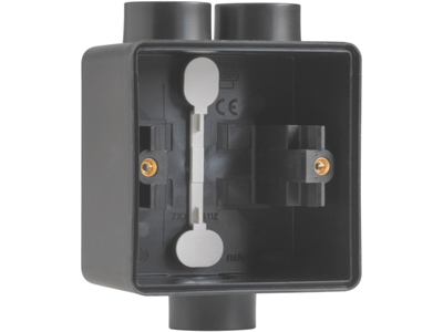 Deze opbouwdoos met één tweevoudige M20-ingang én één enkelvoudige M20-ingang is geschikt voor het inbouwen van één functie. Het geheel is spuitwaterdicht wat het uitermate geschikt maakt voor gebruik in vochtige ruimtes en veeleisende omgevingen. Afwerkingskleur: black