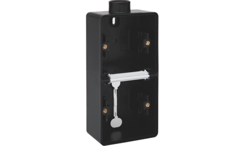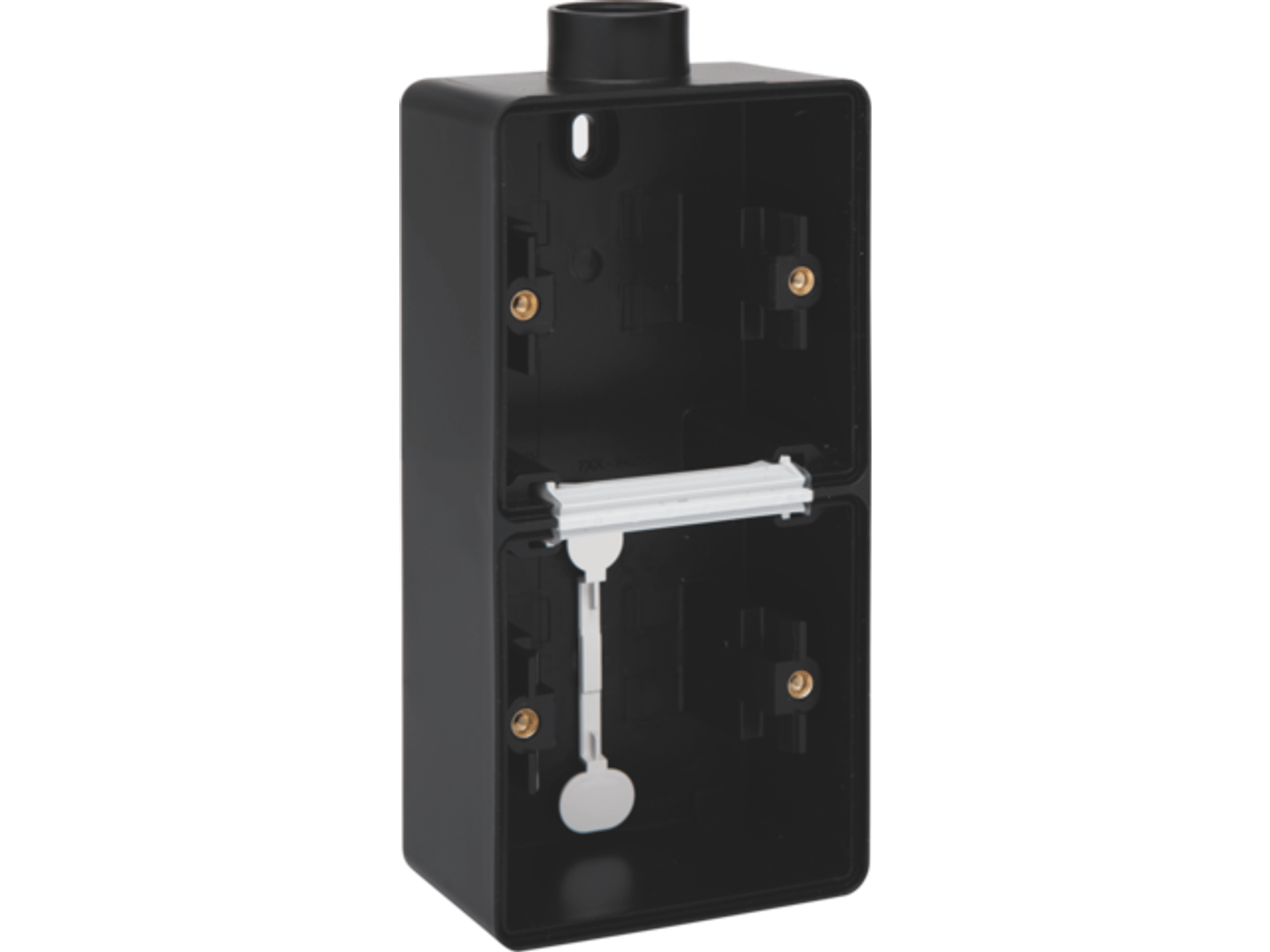 Deze dubbele verticale opbouwdoos met één M20-ingang is geschikt voor het inbouwen van twee functies. Het geheel is spuitwaterdicht wat het uitermate geschikt maakt voor gebruik in vochtige ruimtes en veeleisende omgevingen. Afwerkingskleur: black